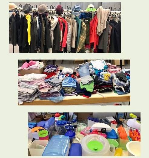 Haushaltswaren, gute Schuhe und Kleidung, Haushaltswäsche, Elektrokleingeräte (die von unseren Spezialisten auf Funktionalität überprüft werden), Brillen, Handys, kleine Werkzeuge, Taschen und Rucksäcke, Bücher, CDs, Schallplatten, Spielzeuge und Spiele.